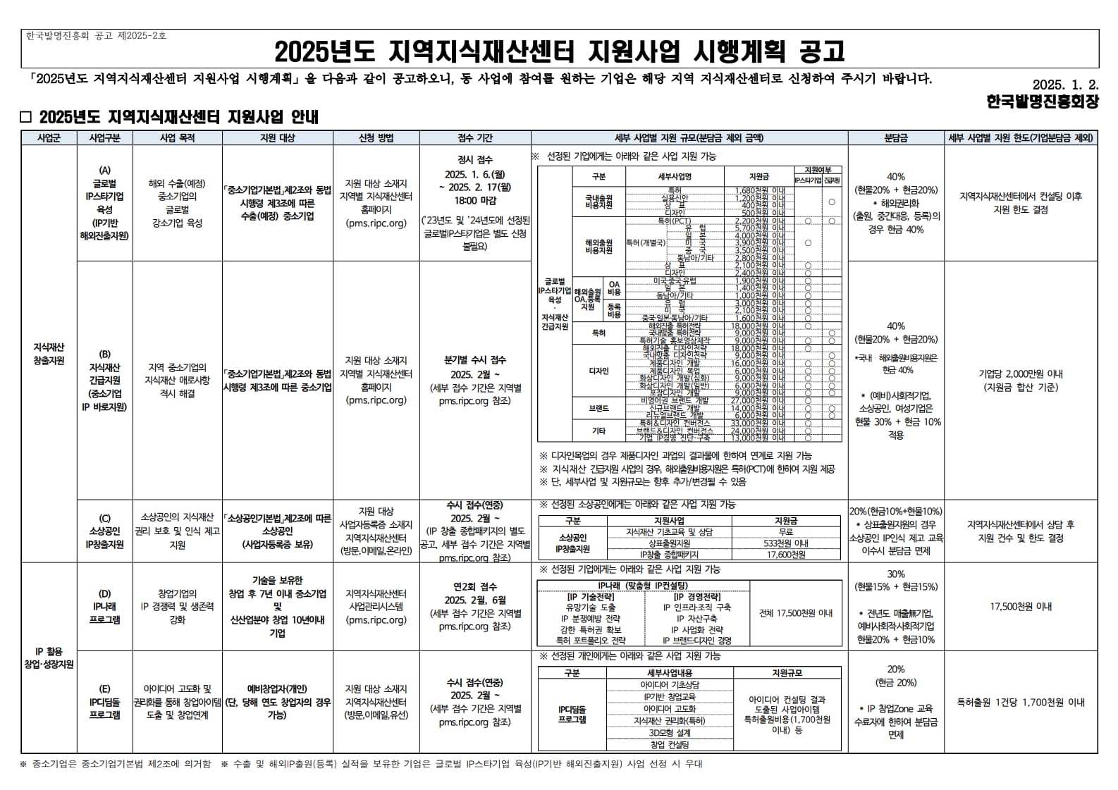 2. RIPC(지역지식재산권센터) 지원제도 – 예비 창업자, 소상공인, 중소기업 등 유형별로 지원한다.